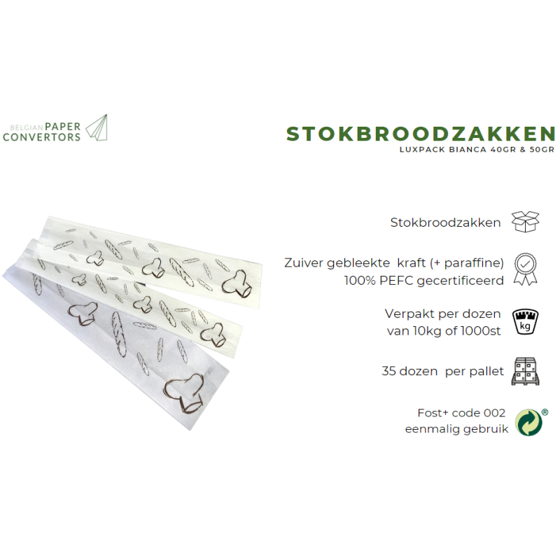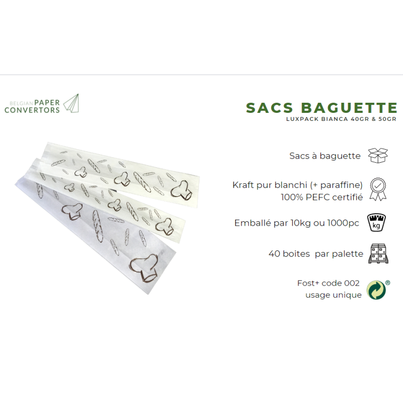 STDR baguette bag 2 piece 17x(2x5,2)x60/62 cm, Luxpack Bianca 50 gr + wax