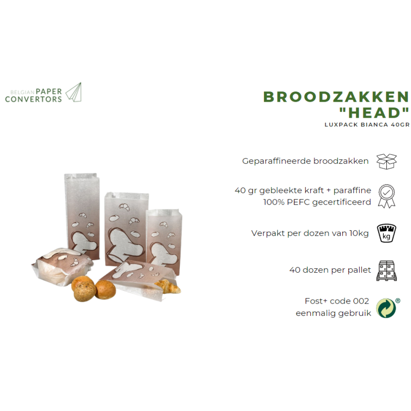 STRD bread bag 1/2 kg round “ Head” , 17x(2x5,2)x32/34 cm, Luxpack Bianca 40 gr + wax