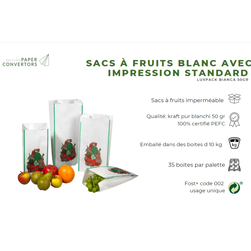 STDR waxed fruit bag 1 kg, 17x(2x5,2)x32/34 cm Luxpack Bianca 50 gr + wax
